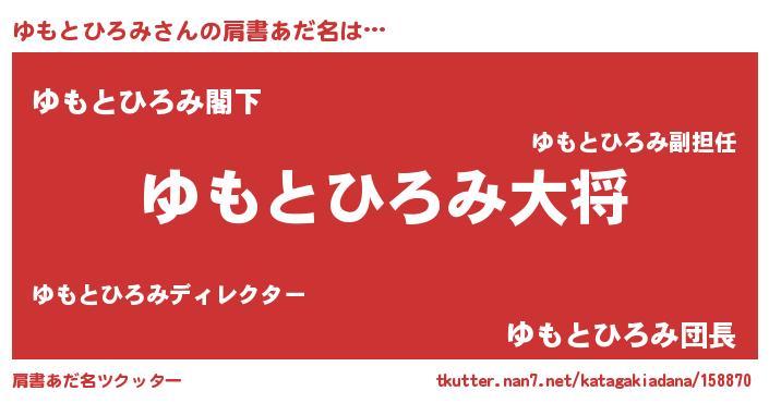 | 男性向けラノベタイトル風あだ名 | 『ゆもとひろみ~年齢イコール彼女いない歴の魔法使い~』 |