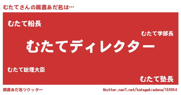 | ヘコむあだ名 | 『むたっ子』『豆乳』『むたて(笑)』 |