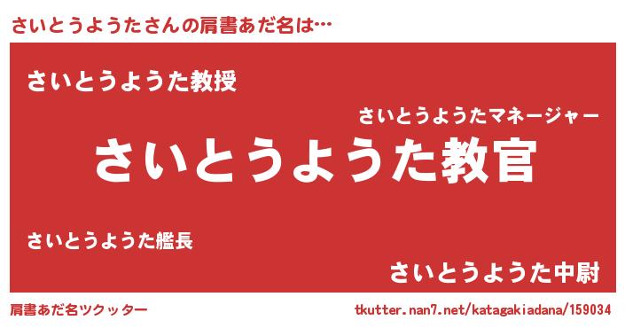 | 男性向けラノベタイトル風あだ名 | 『この素晴らしい世界にさいとうようたを!』 |