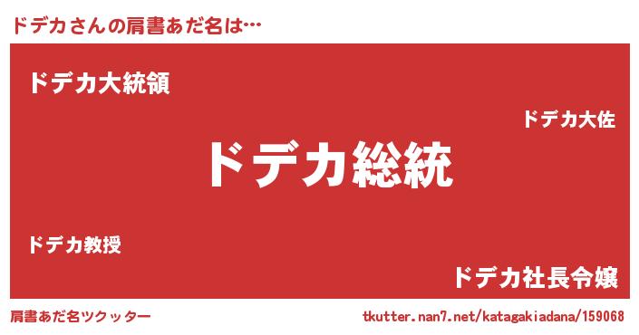 | 男性向けラノベタイトル風あだ名 | 『Re:ドデカから始める異世界生活』 |