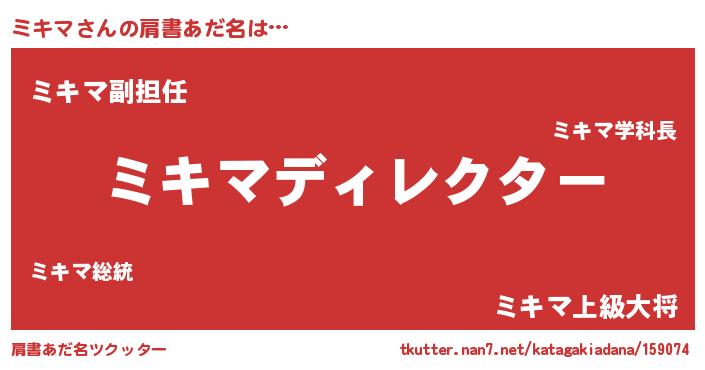 | 胡散臭い通販商品みたいなあだ名 | 『来世でも幸せになれる健康食品…その名も「ミキマ」』 |