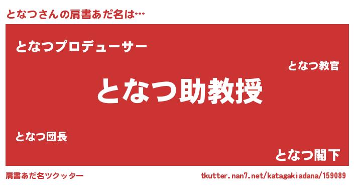 | 可愛いあだ名 | 『となちゅっちゅ』『となうちぇる』 |