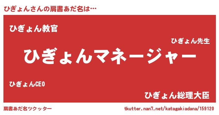 | ヒーロー風カッコイイあだ名 | 『仮面ヒギダー』『ウルトラひぎょんマン』 |