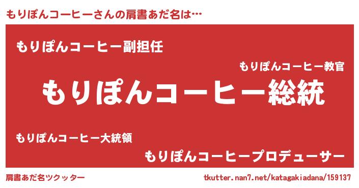 | 男性向けラノベタイトル風あだ名 | 『Re:もりぽんコーヒーから始める異世界生活』 |