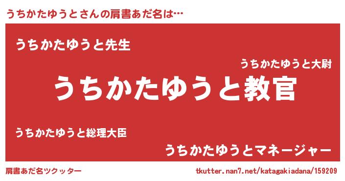 | 男性向けラノベタイトル風あだ名 | 『この素晴らしい世界にうちかたゆうとを!』 |
