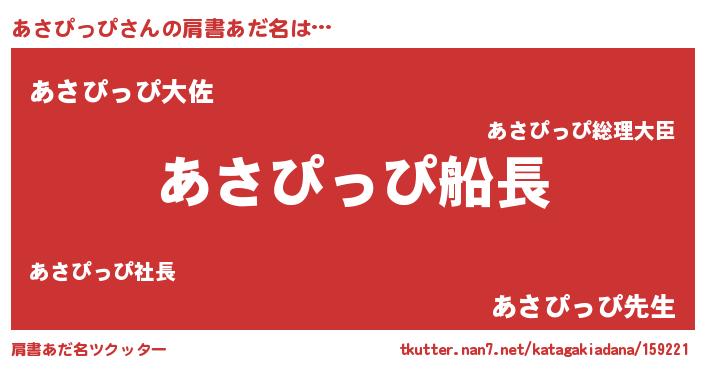 | 男性向けラノベタイトル風あだ名 | 『緋弾のアサピッピ』『あさぴっぴの憂鬱』 |
