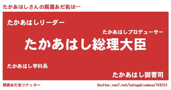| ポケモン風あだ名 | 『タカアダネ』『ヒタカアハシ』 |