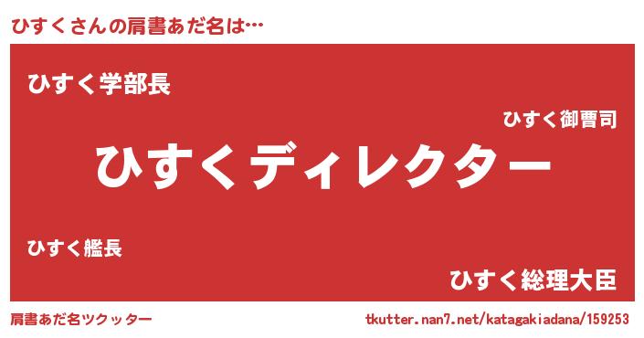 | 男性向けラノベタイトル風あだ名 | 『ひすくに滅ぼされるだけの簡単なお仕事です』 |
