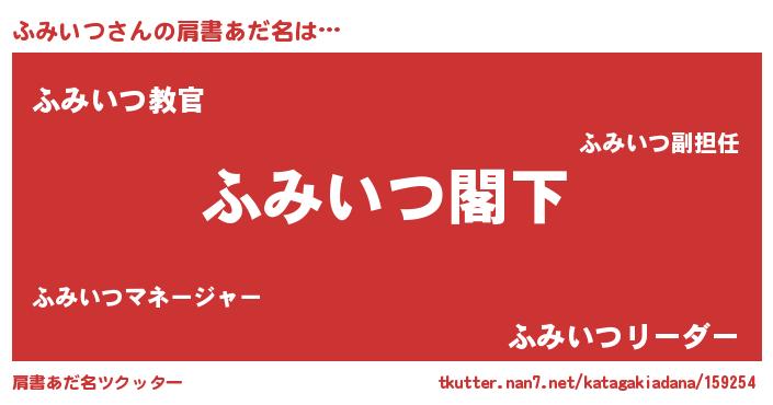 | 意味不明あだ名 | 『自称ふみいつ』『永久保存ふみいつ』 |