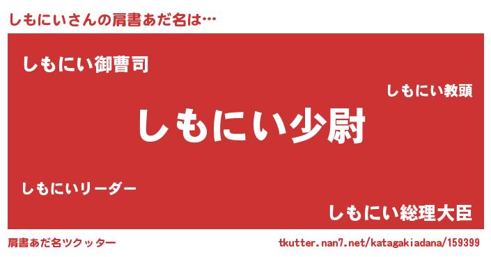 | 胡散臭い通販商品みたいなあだ名 | 『モテモテ間違いなし水晶球…その名も「しもにい」』 |