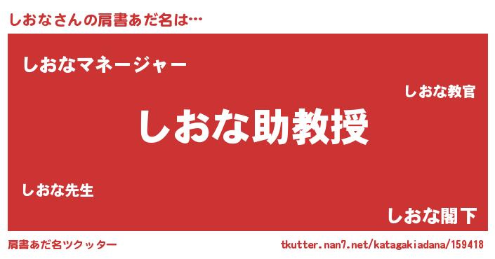 | 欧米人風あだ名 | 『ダニエルしおな』『アンジェラ・しおな』 |