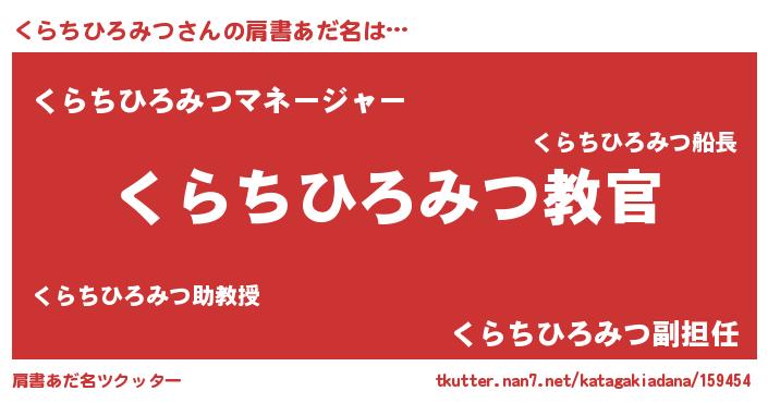 | 男性向けラノベタイトル風あだ名 | 『この素晴らしい世界にくらちひろみつを!』 |