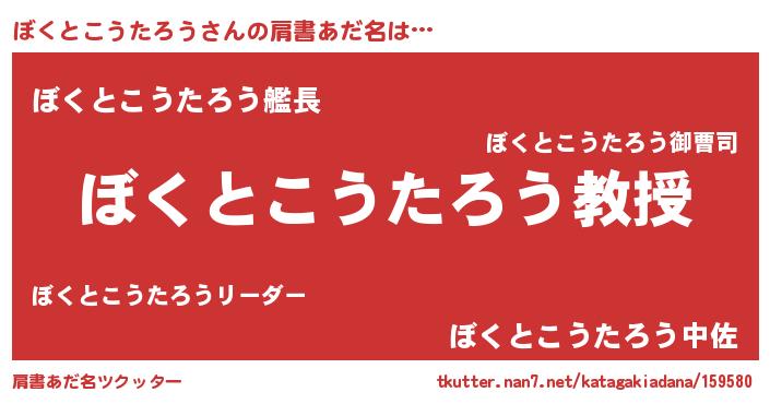 | 男性向けラノベタイトル風あだ名 | 『ノーゲーム・ノーボクトコウタロウ』 |