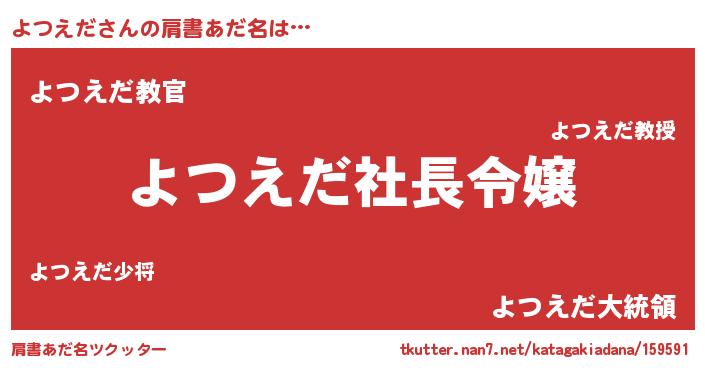 | 欧米人風あだ名 | 『マイケルよつえだ』『ダニエルよつえだ』 |