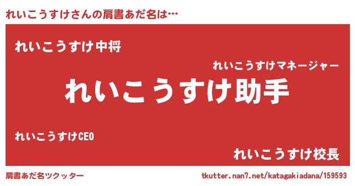 | 男性向けラノベタイトル風あだ名 | 『ノーゲーム・ノーレイコウスケ』 |
