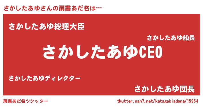 | 恥ずかしいあだ名 | 『プリティーさかしたあゆ』『さかっちょ』 |