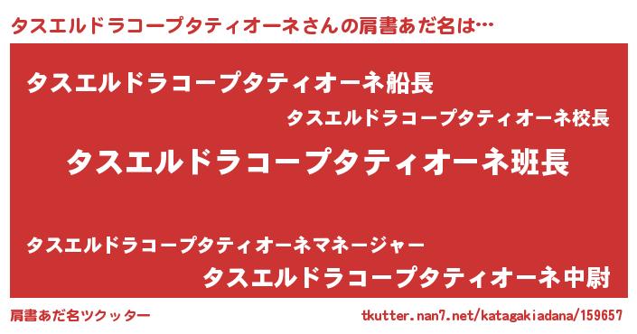 | 意味不明あだ名 | 『とにかく怪しいタスエルドラコープタティオーネ』 |
