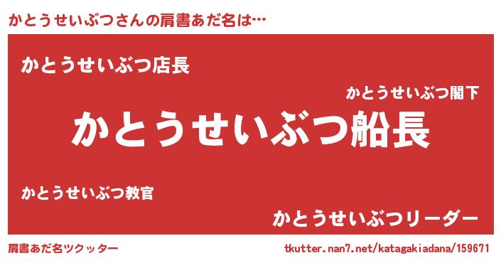 | 欧米人風あだ名 | 『かとうせいぶつ・ステッグマイヤー』 |