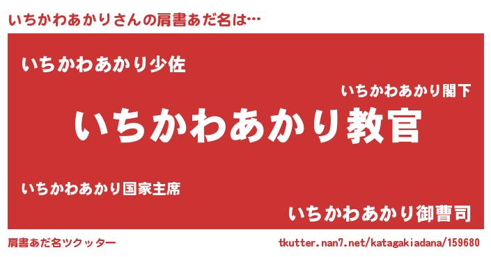 | 男性向けラノベタイトル風あだ名 | 『魔弾の王といちかわあかり』 |
