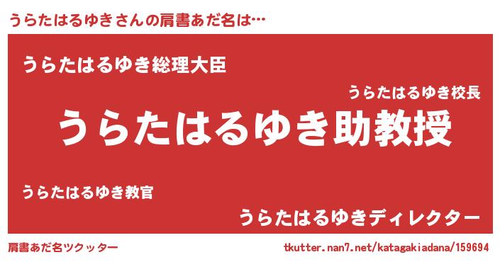 | 男性向けラノベタイトル風あだ名 | 『おまえをオタクにしてやるから、俺をうらたはるゆきにしてくれ! 』 |