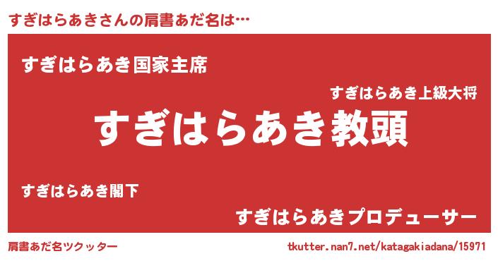 | 伝説のあだ名 | 『古より伝わる吟遊詩人すぎはらあき』 |