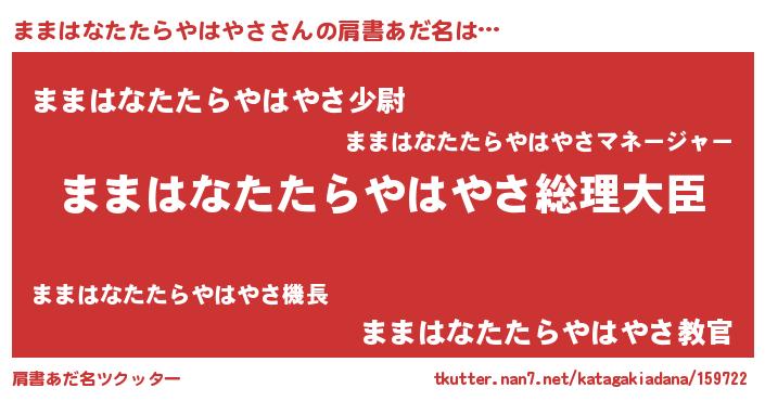 | 女子向けラノベタイトル風あだ名 | 『ままはなたたらやはやさの雑貨屋さん』 |
