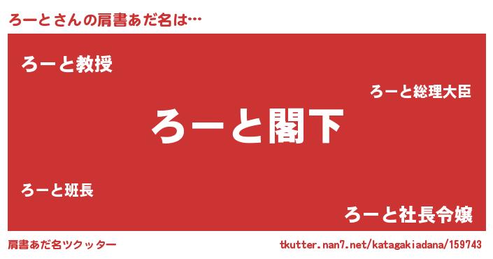 | 女子向けラノベタイトル風あだ名 | 『闇のろーと』『ろーと夫妻のなれそめ』 |