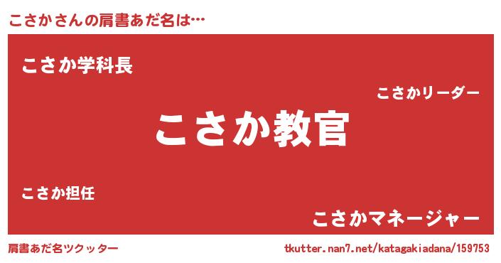 | 男性向けラノベタイトル風あだ名 | 『この素晴らしい世界にこさかを!』 |