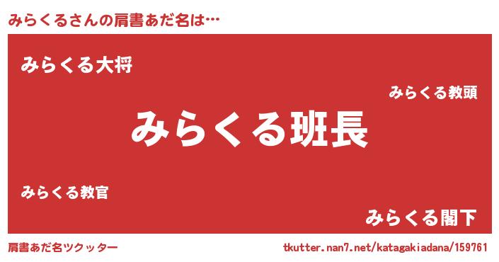 | 意味不明あだ名 | 『とにかく怪しいみらくる』 |