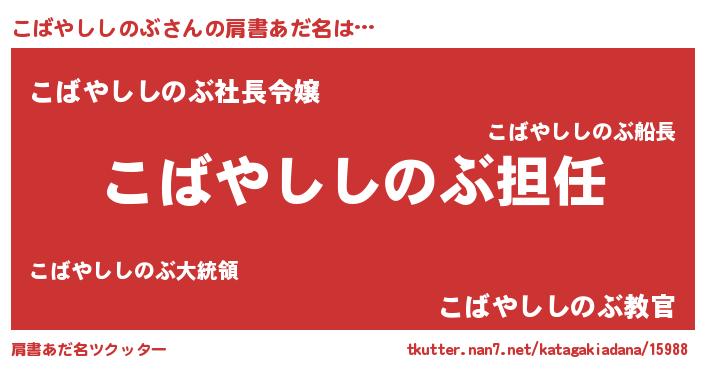 ヘコむあだ名 | 『こばやししのぶ(苦笑)』『こばもー』 |