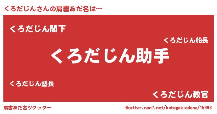 | 女子向けラノベタイトル風あだ名 | 『死神くろだじんの再婚』 |