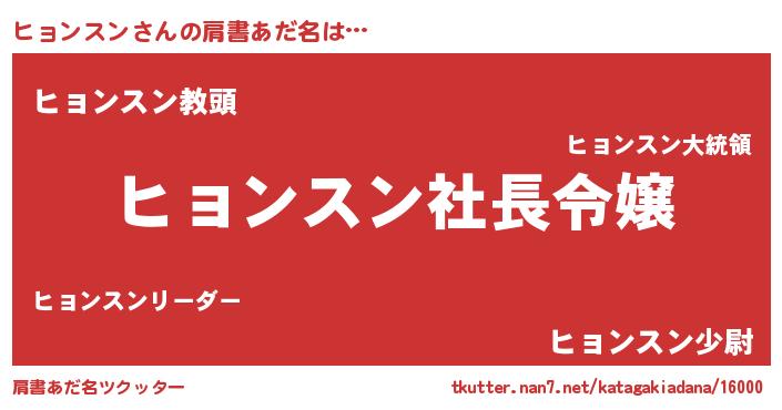 | 女子向けラノベタイトル風あだ名 | 『ヒョンスン姫と円卓の騎士』 |