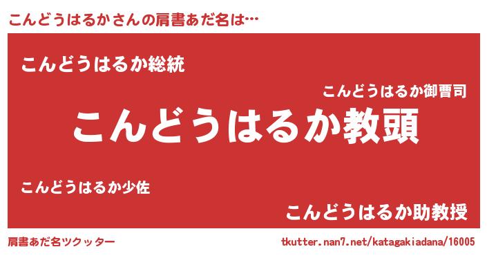 | 男性向けラノベタイトル風あだ名 | 『こんどうはるかという概念が存在しない退屈な世界 』 |