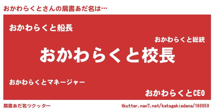 | ヒーロー風カッコイイあだ名 | 『ネオオカワラクト』『仮面オカダー』 |