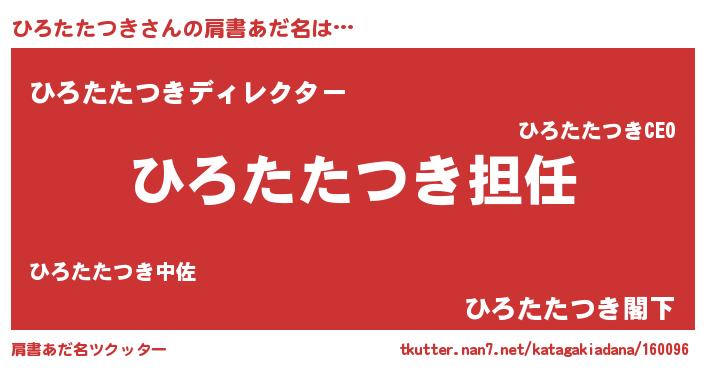 | ヘコむあだ名 | 『ひろたたつき(苦笑)』『ひろもー』 |