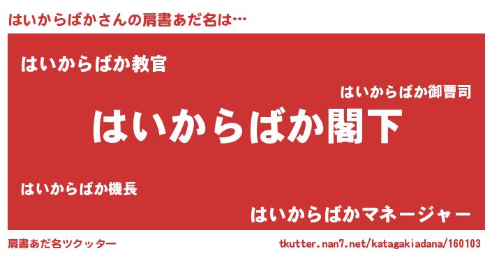 | 意味不明あだ名 | 『自称はいからばか』 |