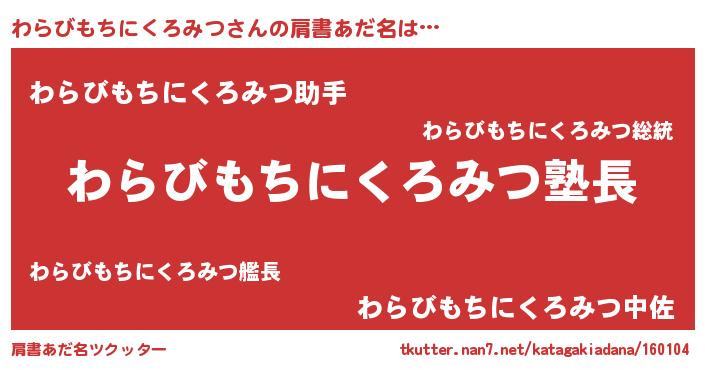 | 欧米人風あだ名 | 『ウサインわらびもちにくろみつ』 |