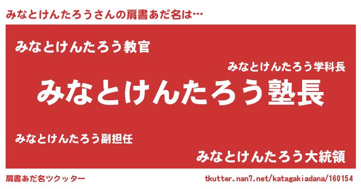 | 女子向けラノベタイトル風あだ名 | 『みなとけんたろう様がみてる』 |