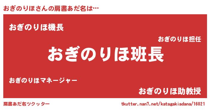 | 男性向けラノベタイトル風あだ名 | 『ダンジョンにおぎのりほを求めるのは間違っているだろうか』 |