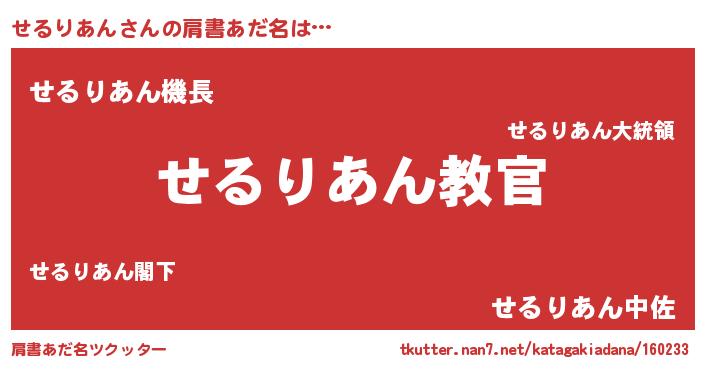 | 意味不明あだ名 | 『住所不定無職せるりあん(85歳)』 |