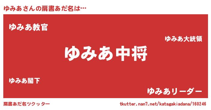 | 意味不明あだ名 | 『ヨモギ科ゆみあ属』『自称ゆみあ』 |