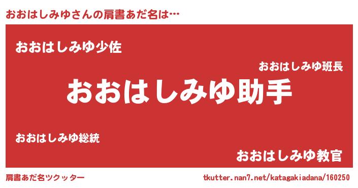 | 男性向けラノベタイトル風あだ名 | 『おまえをオタクにしてやるから、俺をおおはしみゆにしてくれ! 』 |