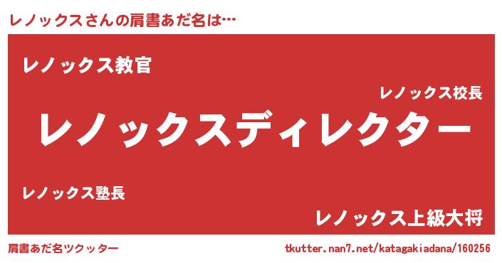 | 男性向けラノベタイトル風あだ名 | 『レノックスに滅ぼされるだけの簡単なお仕事です』 |