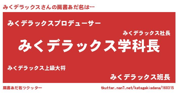 | 男性向けラノベタイトル風あだ名 | 『おまえをオタクにしてやるから、俺をみくデラックスにしてくれ! 』 |