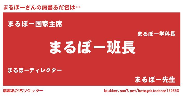 | 意味不明あだ名 | 『とにかく怪しいまるぼー』 |