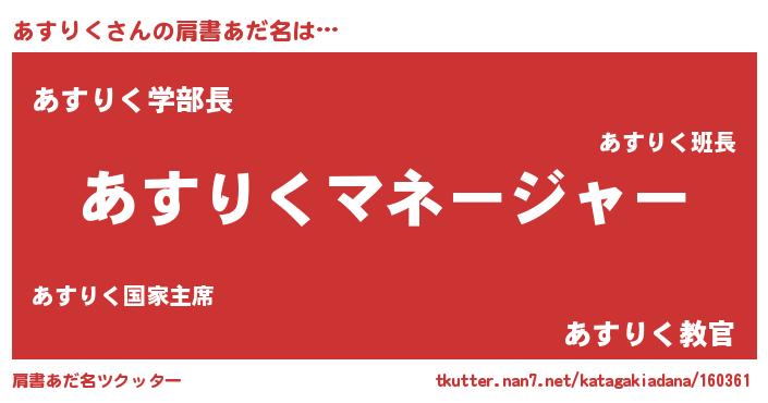 | ヒーロー風カッコイイあだ名 | 『正義の使者あすりく』『仮面アスダー』 |