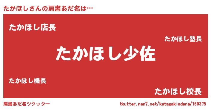 | ヒーロー風カッコイイあだ名 | 『スーパータカホシ』『ネオタカホシ』 |
