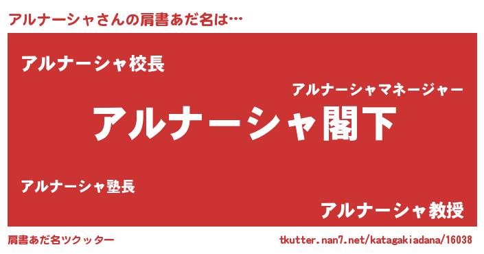 | 意味不明あだ名 | 『自称アルナーシャ』 |