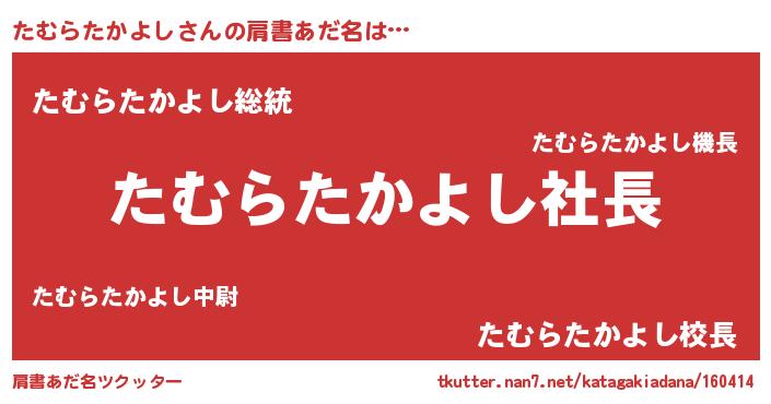 | ヒーロー風カッコイイあだ名 | 『スーパータムラタカヨシ』 |
