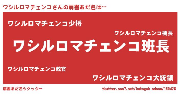 | 胡散臭い通販商品みたいなあだ名 | 『信頼と実績のネックレス…その名も「ワシルロマチェンコ」』 |